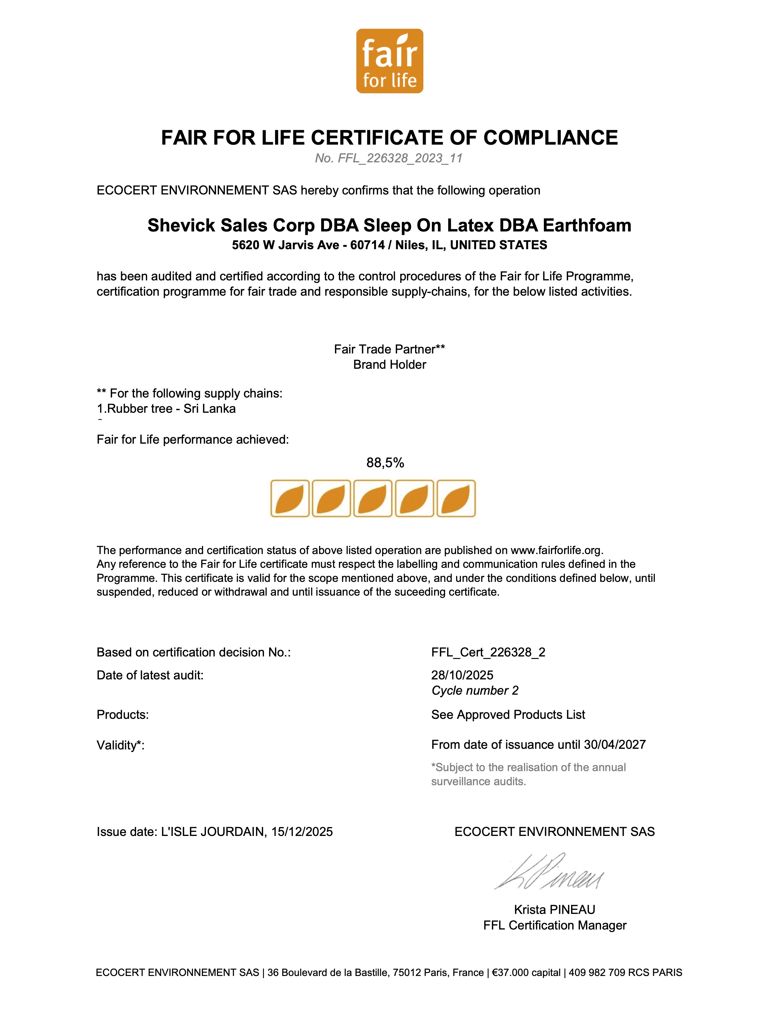 Our products carry several internationally recognized certifications for meeting stringent fair trade, organic, safety, and emissions standards.
